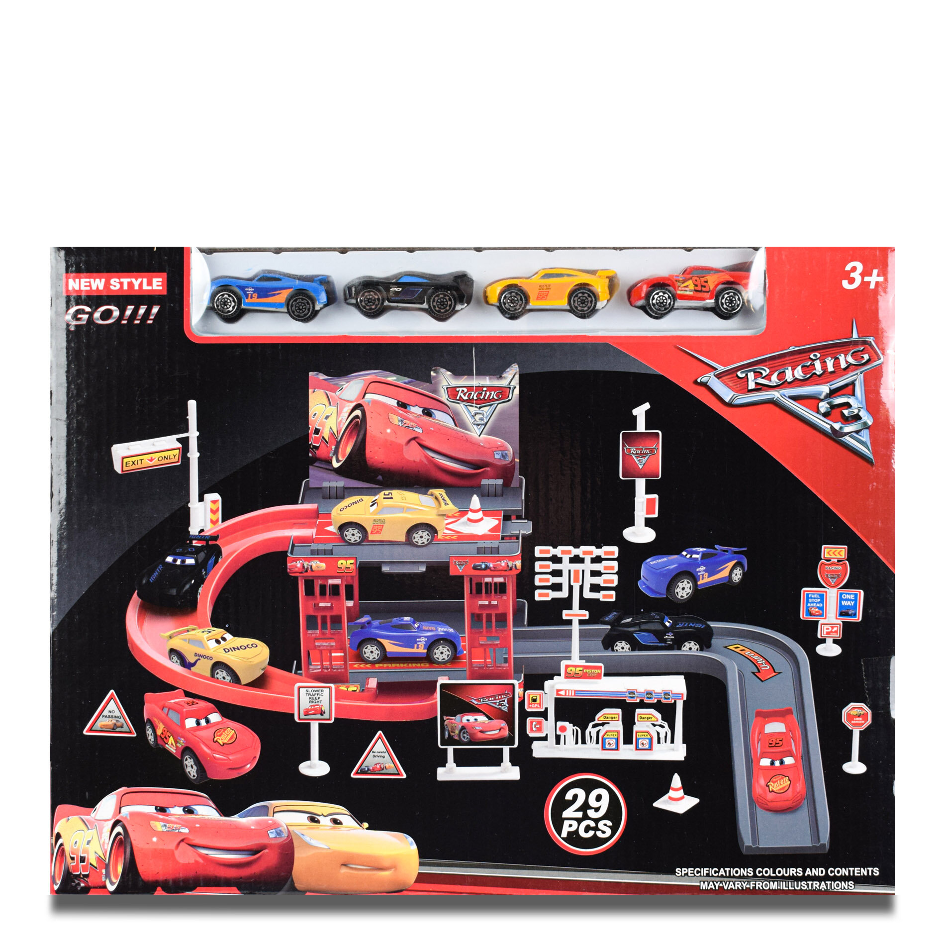 Автотрек парковка для машинок Скоростное шоссе игрушка для мальчиков 4 машинки в комплекте