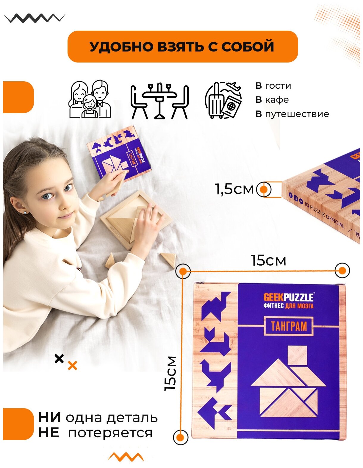 Головоломка Танграм с карточками деревянный для детей и взрослых / GEEK PUZZLE / IQ PUZZLE информация: