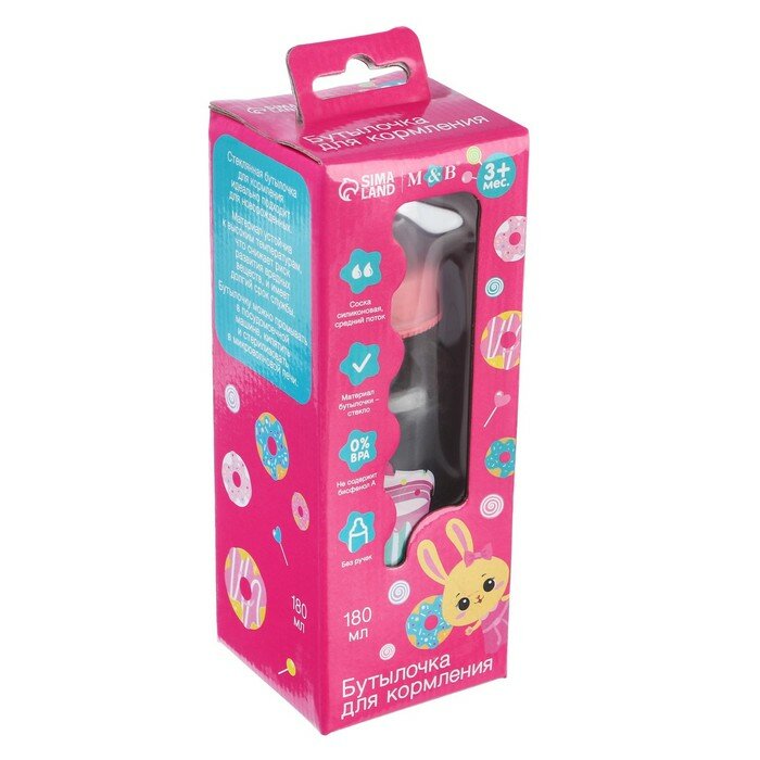 Бутылочка для кормления стекло «Люблю вкусняшки», классическое горло, средний поток, 180 мл., от 3 мес. информация: