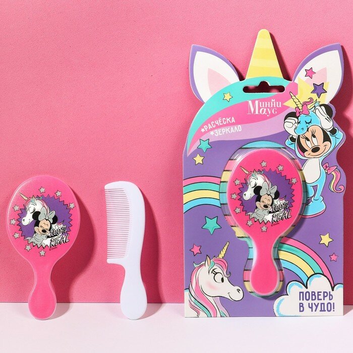 Подарочный набор: расческа и зеркало "Единорог", Минни Маус информация: