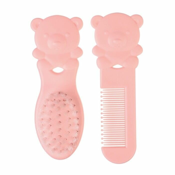 Набор детских расчесок "Мишка" из 2 штук для волос, детская массажная щётка и расческа-гребешок для новорожденных и малышей, цвет розовый информация:
