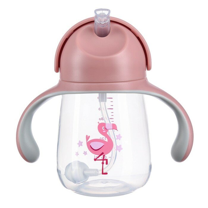 Поильник - непроливайка детский с силиконовой трубочкой «Фламинго», 260 мл., с ручками, цвет розовый информация:
