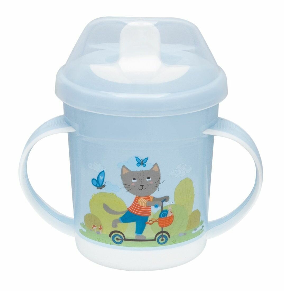 Поильник с ручками, декором и защитной крышкой, 320мл (Светло-голубой) информация: