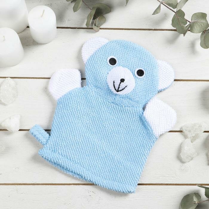 Мочалка-варежка Доляна детская, с петелькой, "Мишка" информация: