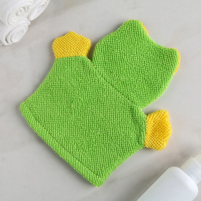 10 цен на Мочалка-варежка Доляна детская, с петелькой, "Лягушонок"