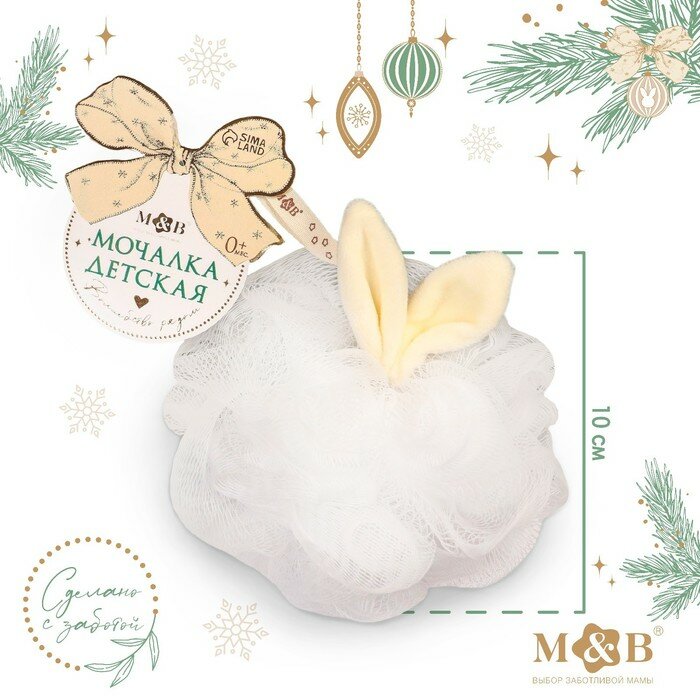 10 цен на Мочалка для тела детская «Новогодний зайка», цвет белый, подарочная упаковка,