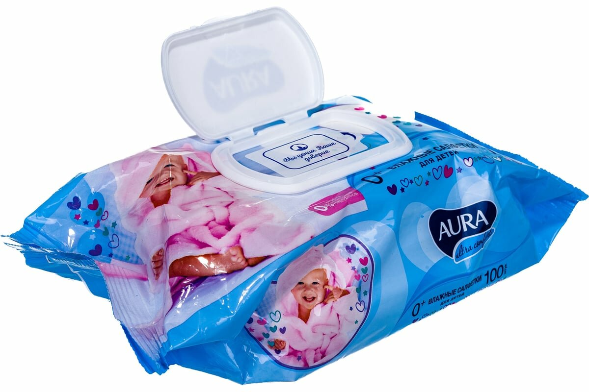 10 цен на Влажные салфетки AURA Ultra comfort комплект 100 шт., для детей, гипоаллергенные, без спирта 127500