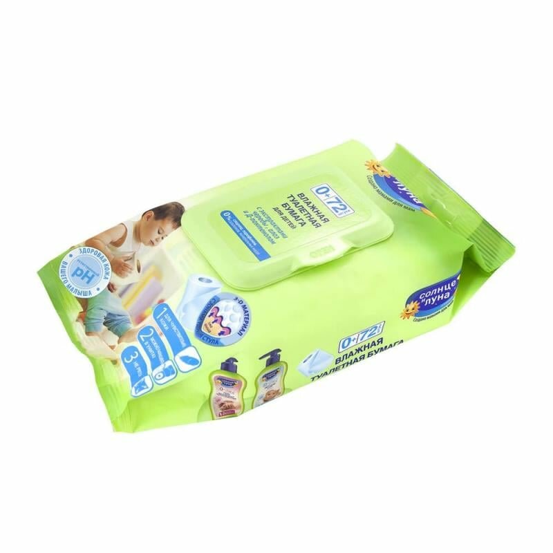 "Солнце и Луна" - влажная туалетная бумага для детей 3 упаковки по 72шт. информация: