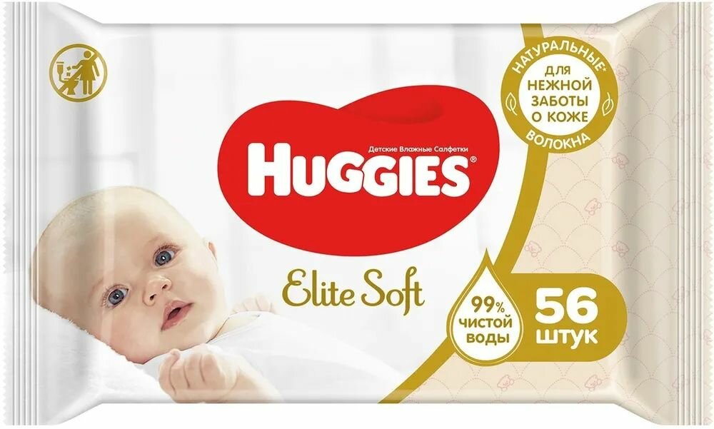 Huggies Влажные салфетки Elite Soft, для новорожденных, 56 шт, 3 уп. информация: