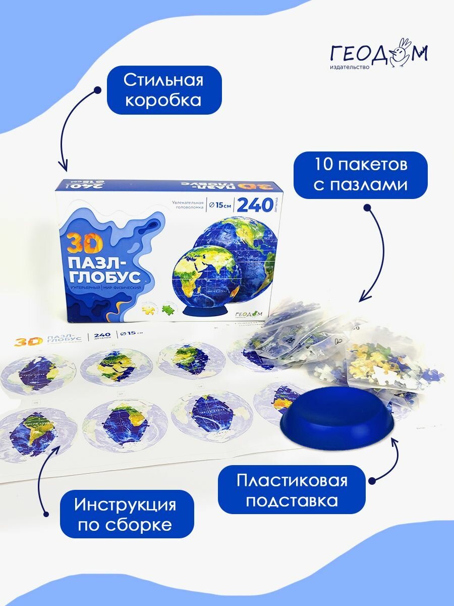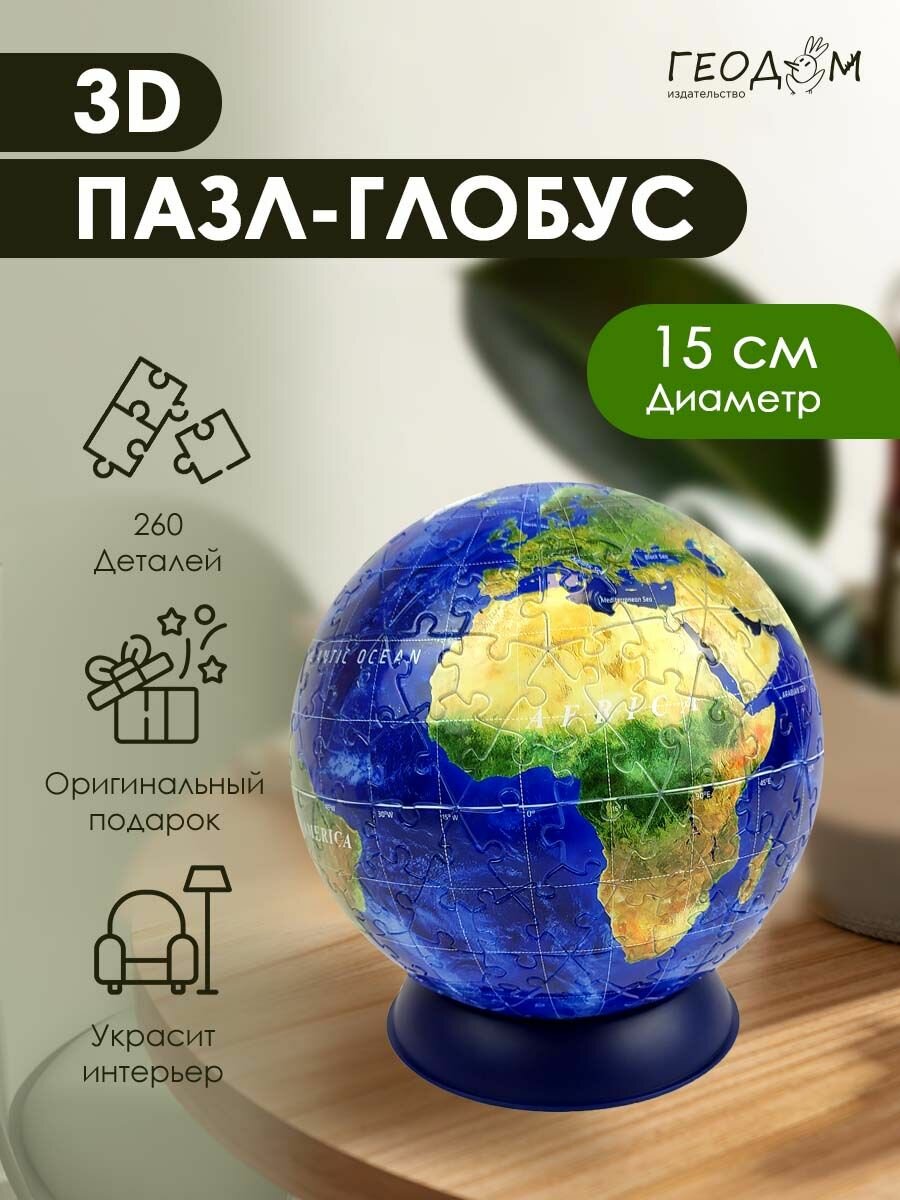 3D Пазл-глобус. Мир физический. Интерьерный информация: