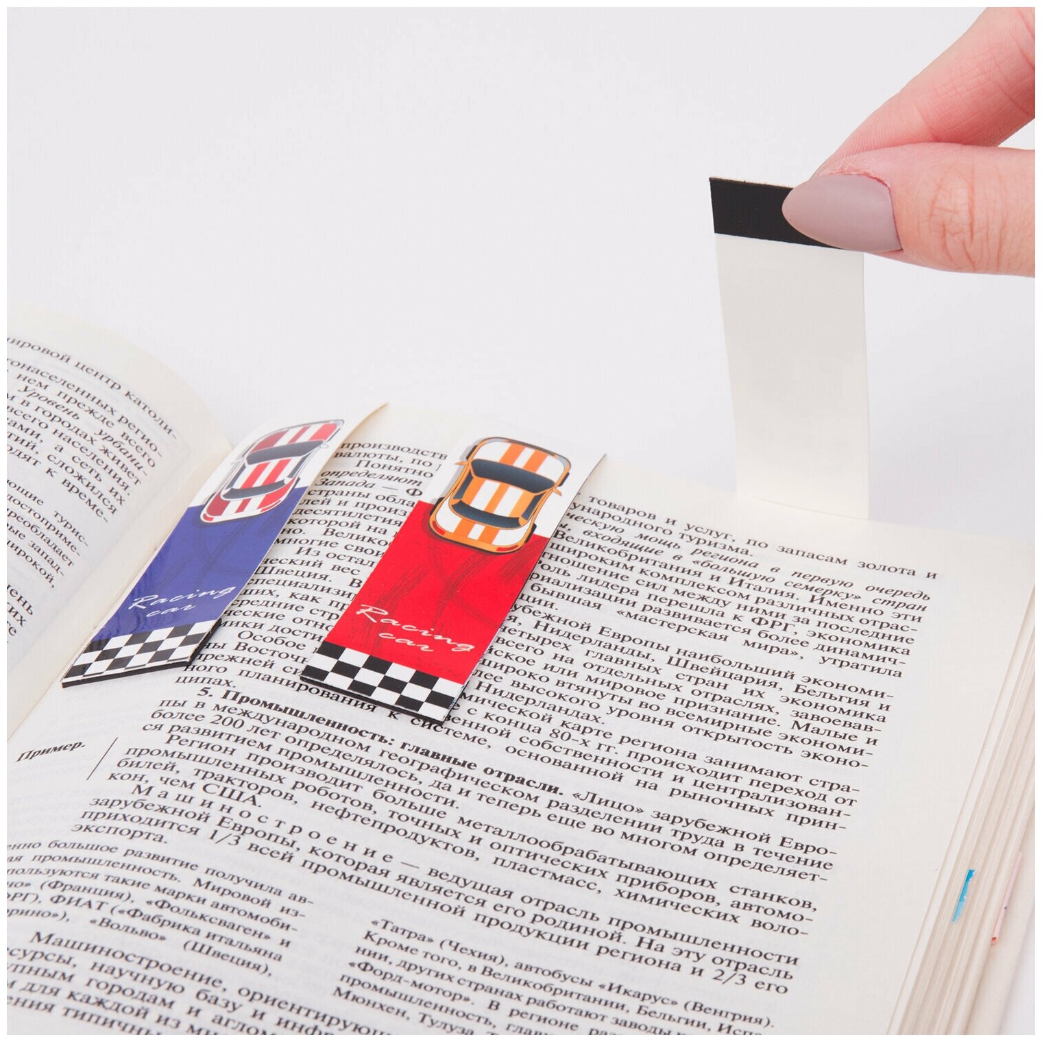 10 цен на Закладки для книг с магнитом RACE CARS, набор 6 шт., блестки, 25x196 мм, юнландия, 113446
