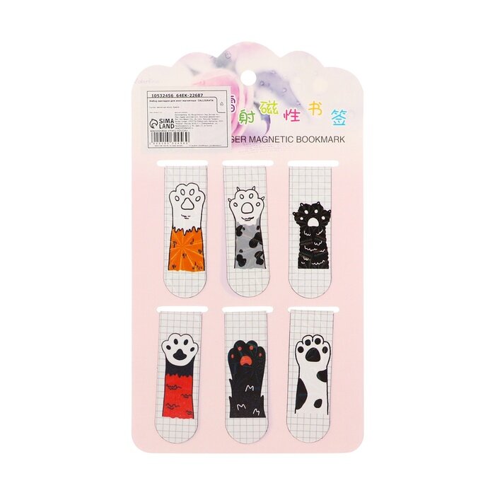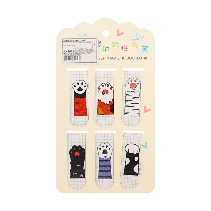 10 цен на Набор закладок магнитных для книг 6 штук Лапки 60*19мм микс CALLIGRATA