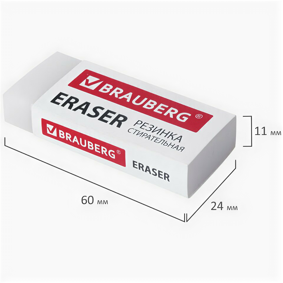 10 цен на Ластик большой BRAUBERG EXTRA, 60х24х11 мм, белый, прямоугольный, экологичный ПВХ, картонный держатель, 228074