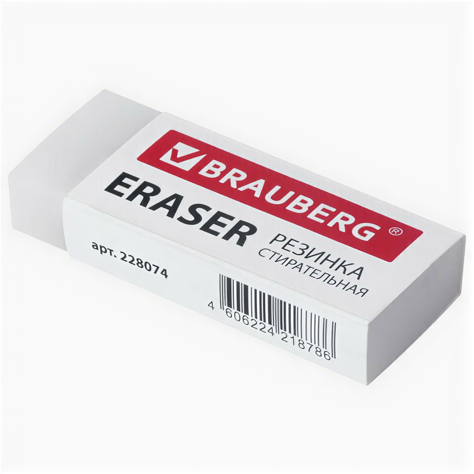 Ластик большой BRAUBERG EXTRA, 60х24х11 мм, белый, прямоугольный, экологичный ПВХ, картонный держатель, 228074 информация: