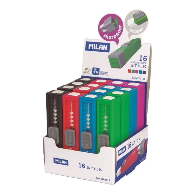 Отзывы на ластик Milan Ластик-точилка Milan STICK с выдвижным ластиком, цвет в ассорт.(4702116)