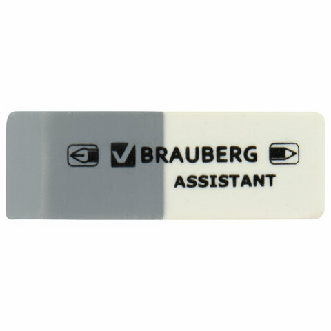 Ластик BRAUBERG "Assistant", 41х14х8 мм, серо-белый, прямоугольный, скошенные края, 222461