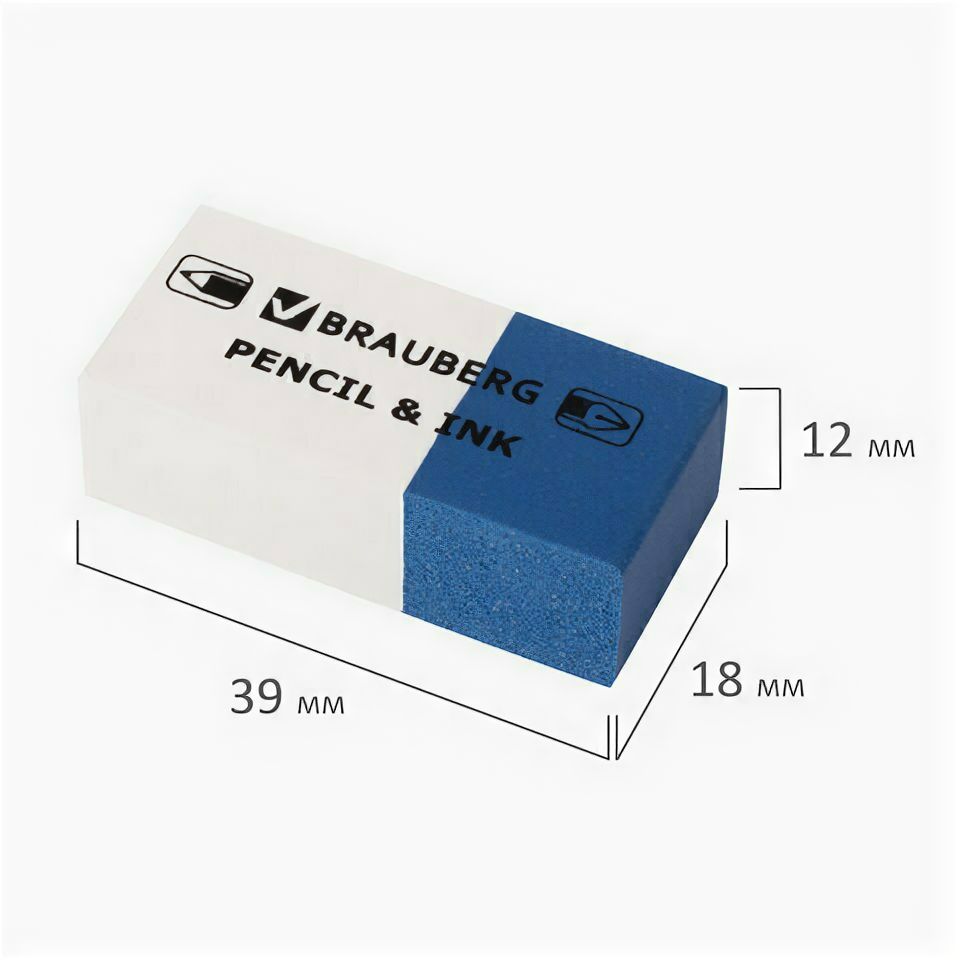 Ластик BRAUBERG "PENCIL & INK", 39х18х12 мм, для ручки и карандаша, бело-синий, 229578 (арт. 229578) информация: