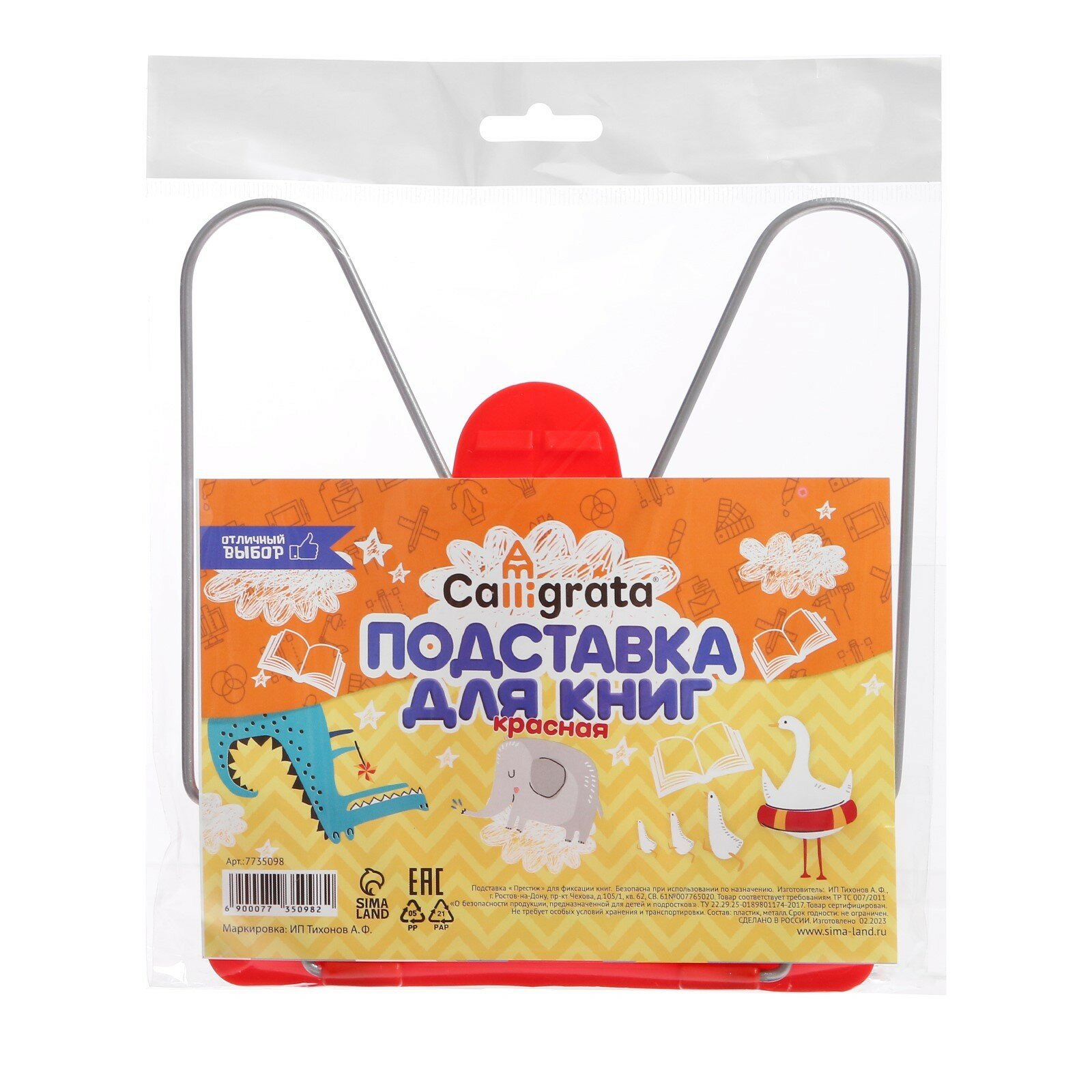Подставка для книг пластик/мелалл Calligrata престиж с европодвесом красная 1шт. информация:
