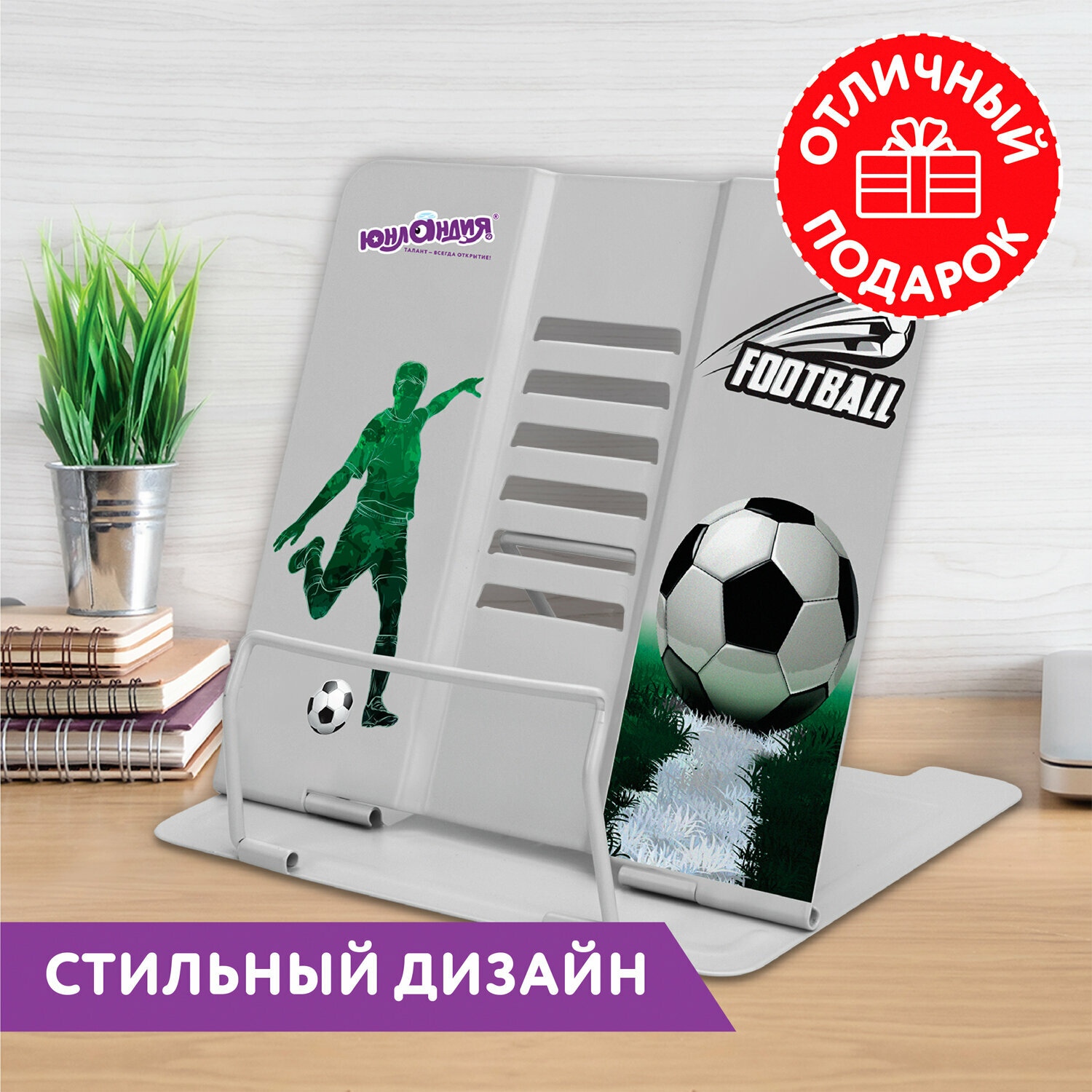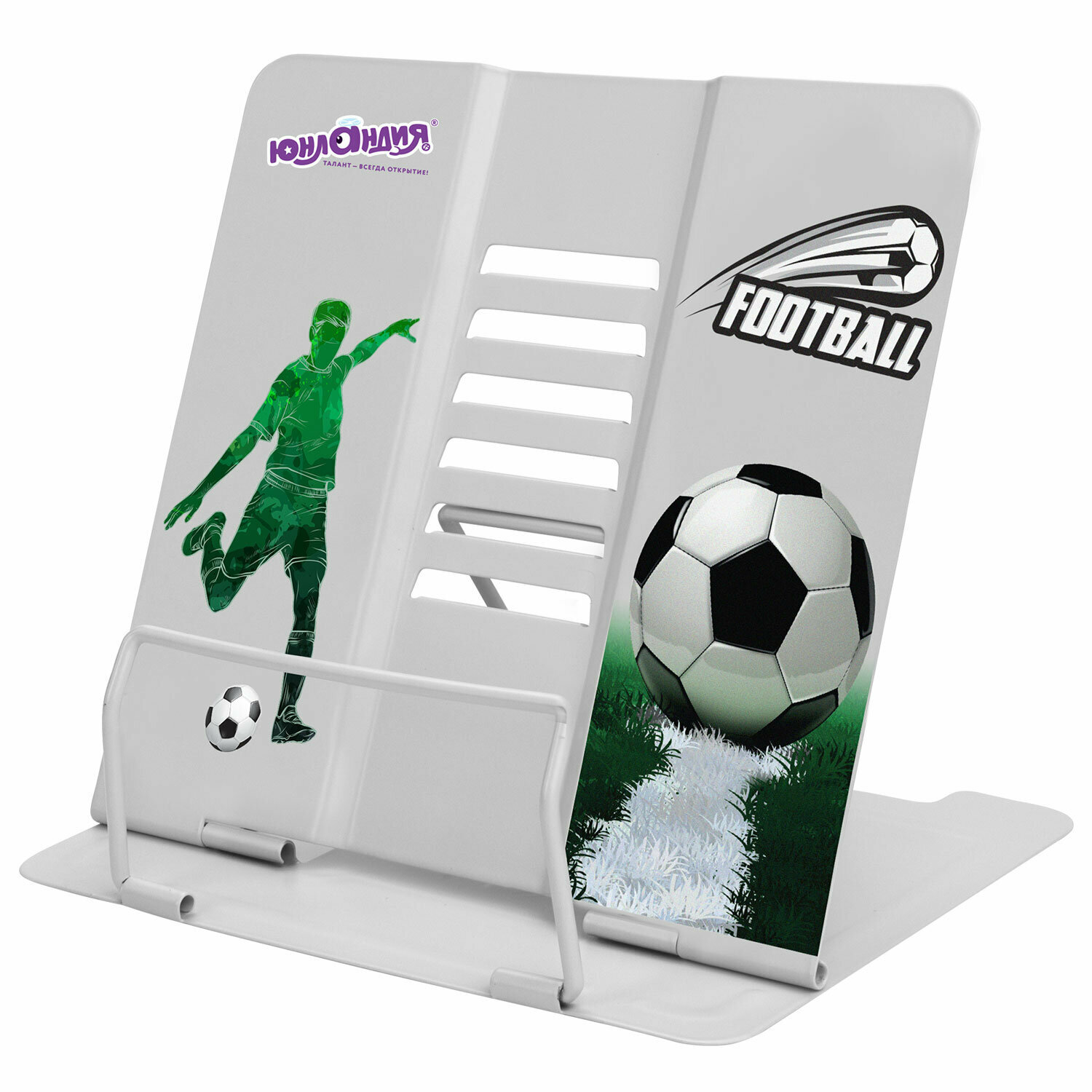10 цен на Подставка для книг и учебников юнландия "Play Football", регулируемый наклон, металлическая, 237574, в комплекте 1шт