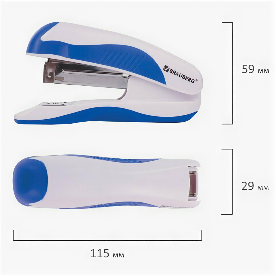 Степлер №10 BRAUBERG "JET PRO", до 12 листов, эргономичный, бело-синий, 228582 (цена за 1 ед.товара) информация: