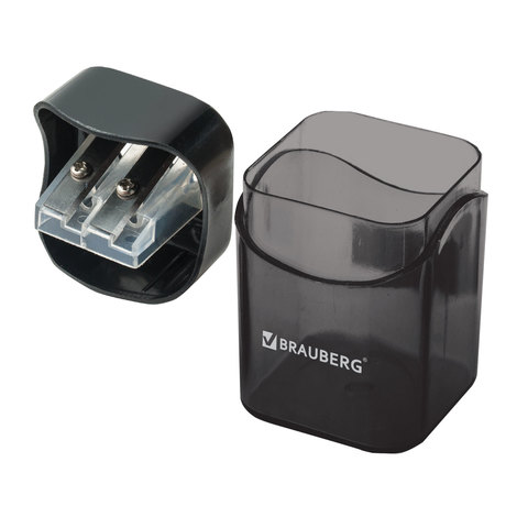 Точилка BRAUBERG "Win", с большим контейнером, прямоугольная, 2 отверстия, дисплей, ассорти (черная, синяя), 222495 информация:
