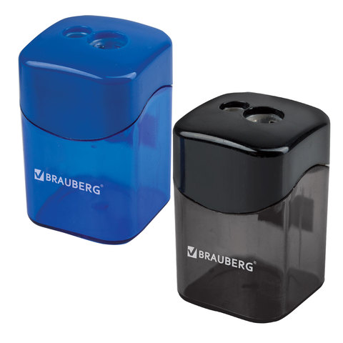 Отзывы на Точилка BRAUBERG "Win", с большим контейнером, прямоугольная, 2 отверстия, дисплей, ассорти (черная, синяя), 222495