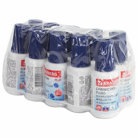 Корректирующая жидкость Brauberg 20 мл, с кисточкой, на водной основе (221270)