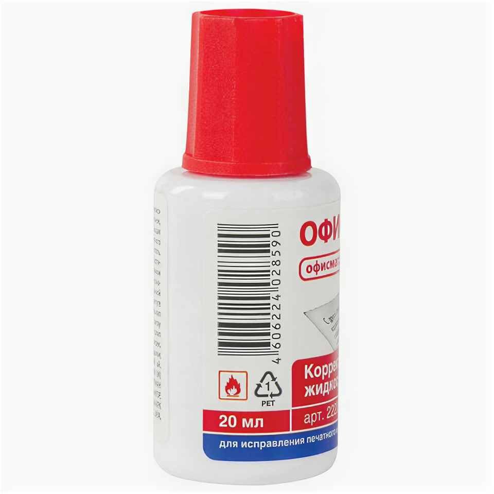 Корректирующая жидкость офисмаг, быстросохнущая, 20 мл, с кисточкой, 222079 - 12 шт. информация: