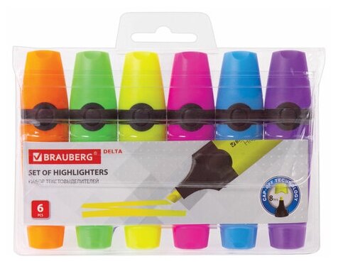 Набор текстовыделителей BRAUBERG 6 шт., ассорти, "DELTA", линия 1-5 мм, 151728 информация:
