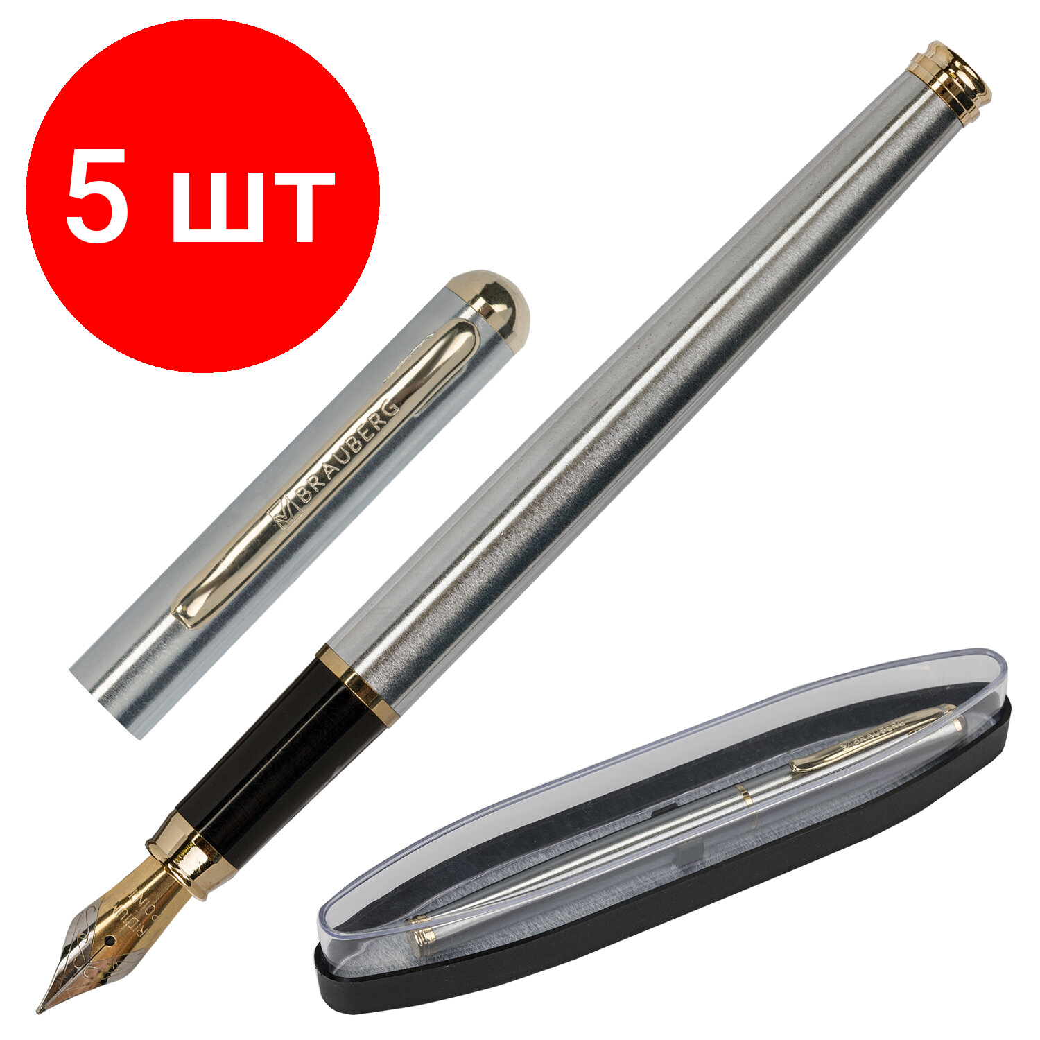 Комплект 5 шт, Ручка подарочная перьевая BRAUBERG Maestro, синяя, корпус серебристый с золотистыми деталями, линия письма 0.25 мм, 143469 информация: