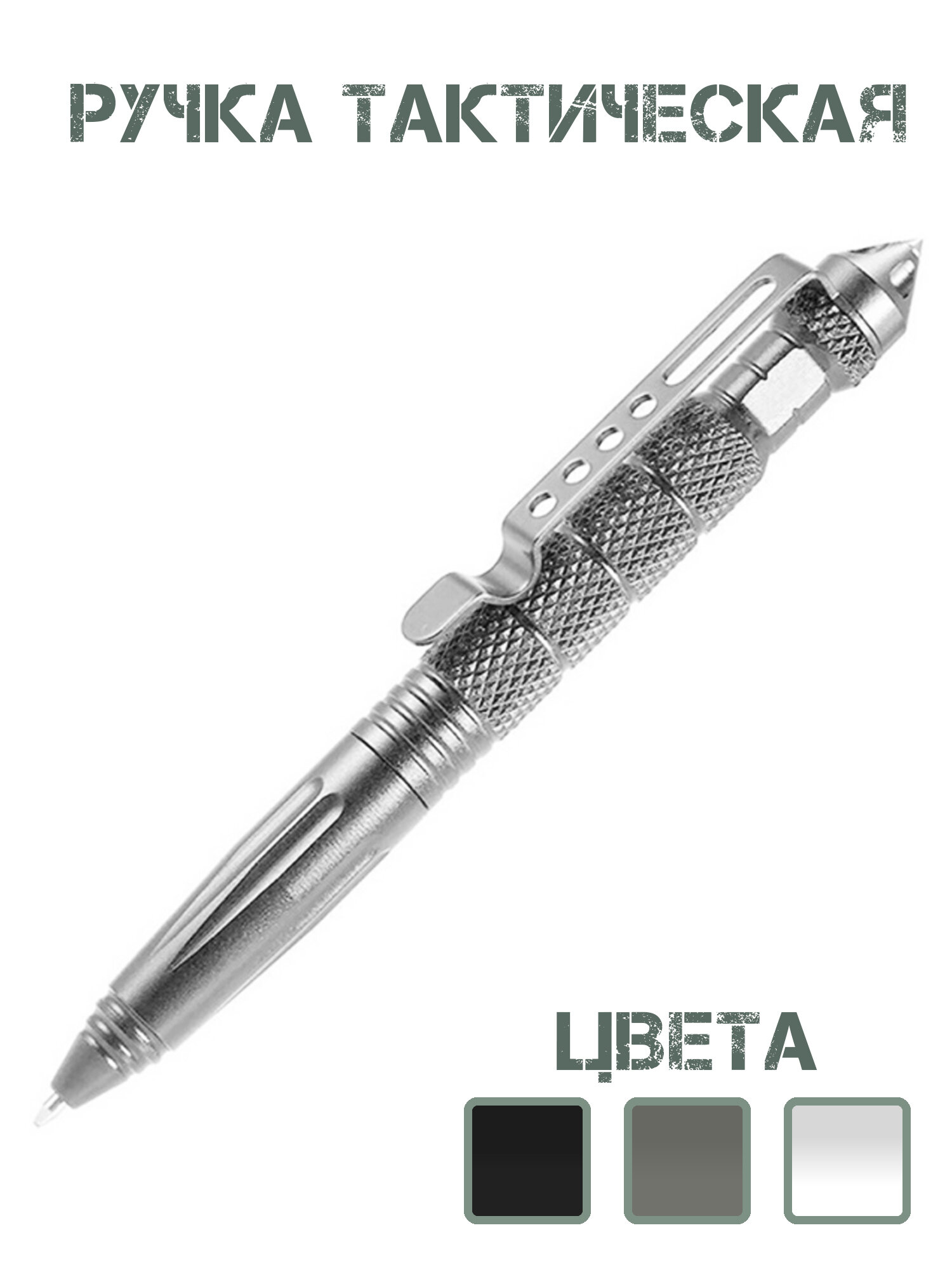 Отзывы на Ручка шариковая тактическая мультитул, сменный стержень 0,7мм, черные чернила, цвет серебристый