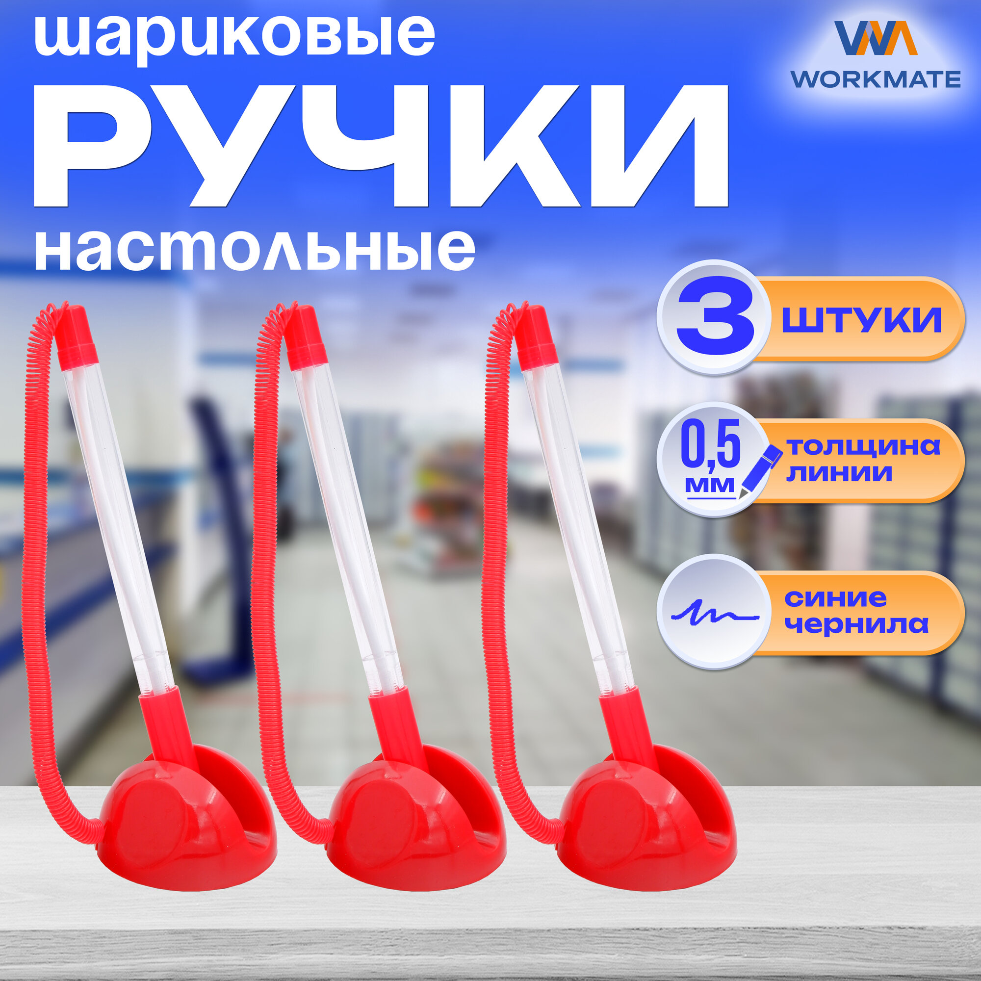 10 цен на Ручка шариковая настольная красный корпус, синие чернила, 3 шт в наборе, на липучке, регулируемый угол наклона (14-8307)