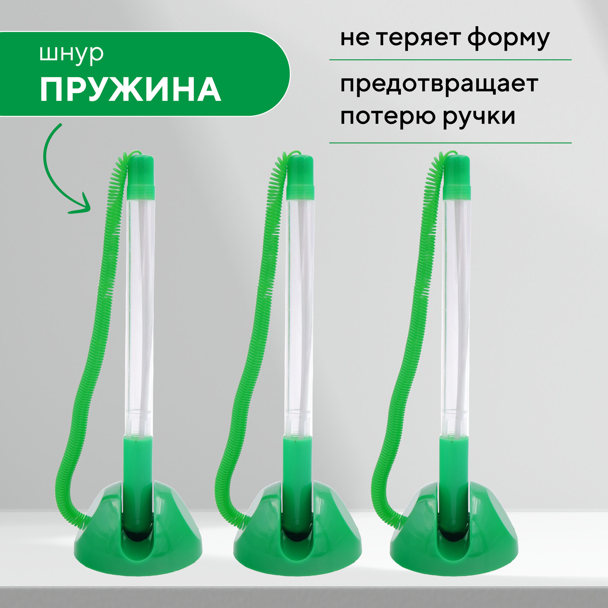 Отзывы на Ручка шариковая настольная зеленый корпус, синие чернила, 3 шт в наборе, на липучке, регулируемый угол наклона (14-5684)