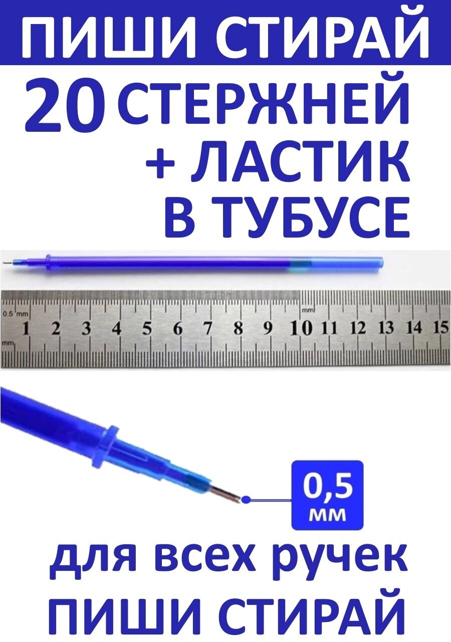 Стержни для ручек пиши-стирай 20 штук / Стержни пиши стирай/ Стираемые чернила/ Толщина линии 0,5мм информация:
