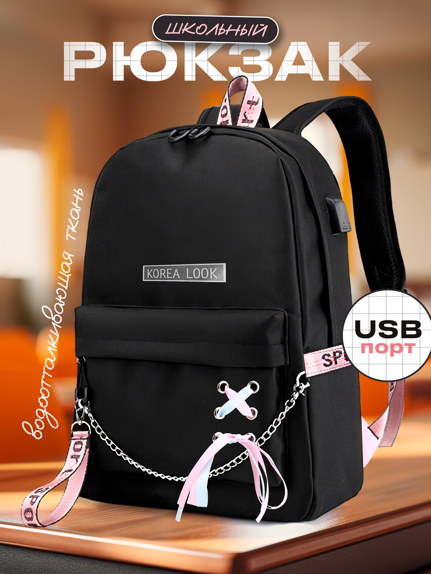 Рюкзак Korea Look набор для девочек школьный 5 предметов (Черный) 1 849 ₽