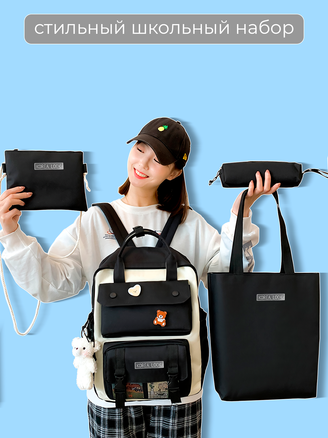 Рюкзак Korea Look набор для девочек школьный 5 предметов (Черный) информация: