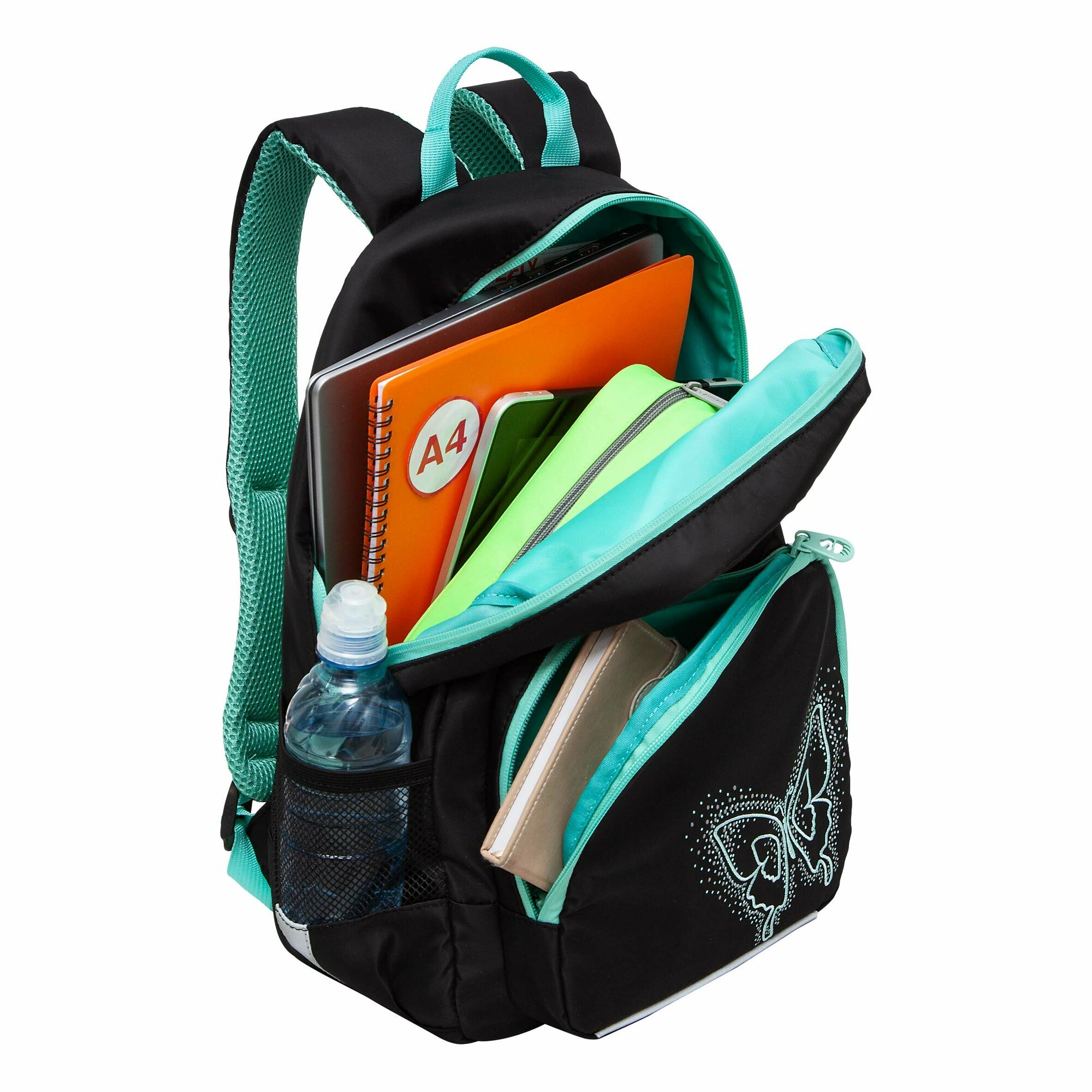 Отзывы на Рюкзак школьный, 40 х 25 х 13 см, Grizzly, эргономичная спинка, отделение для ноутбука, чёрный/бирюзовый