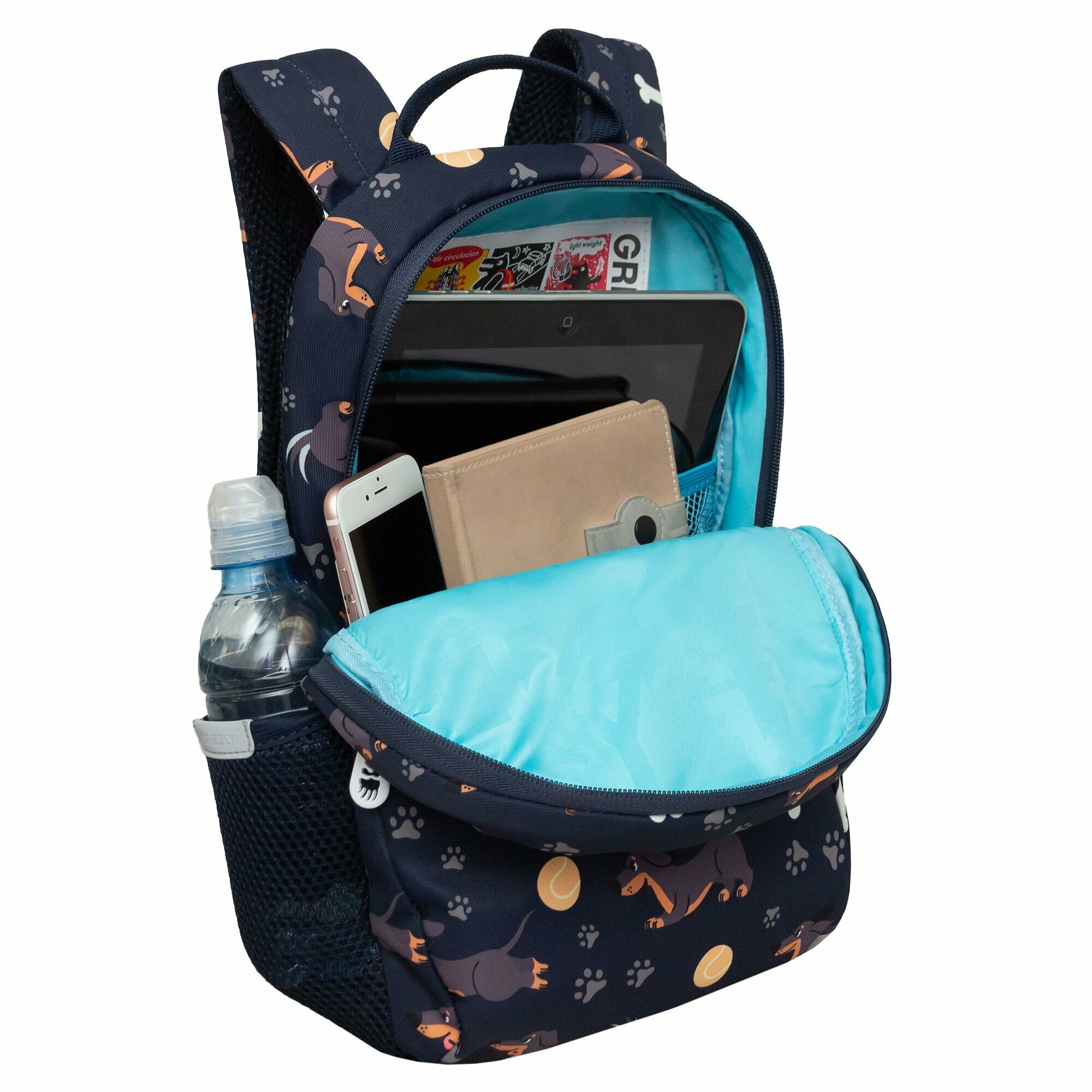 Рюкзак детский Grizzly, 22*28*10см, 1 отделение, 3 кармана, укрепленная спинка, синий (арт. 353541)