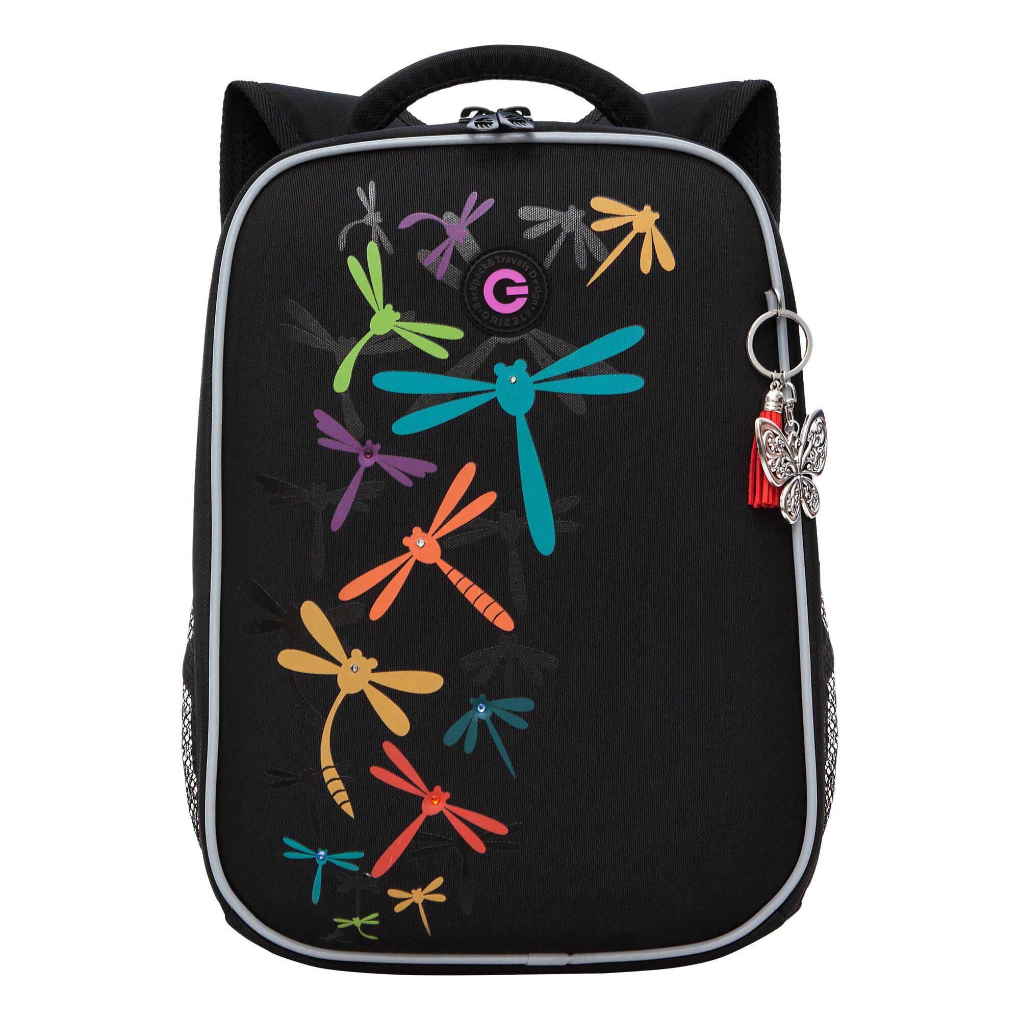 Ранец каркасный, 37 х 26 х 16 см, Grizzly, + брелок, чёрный 6 810 ₽