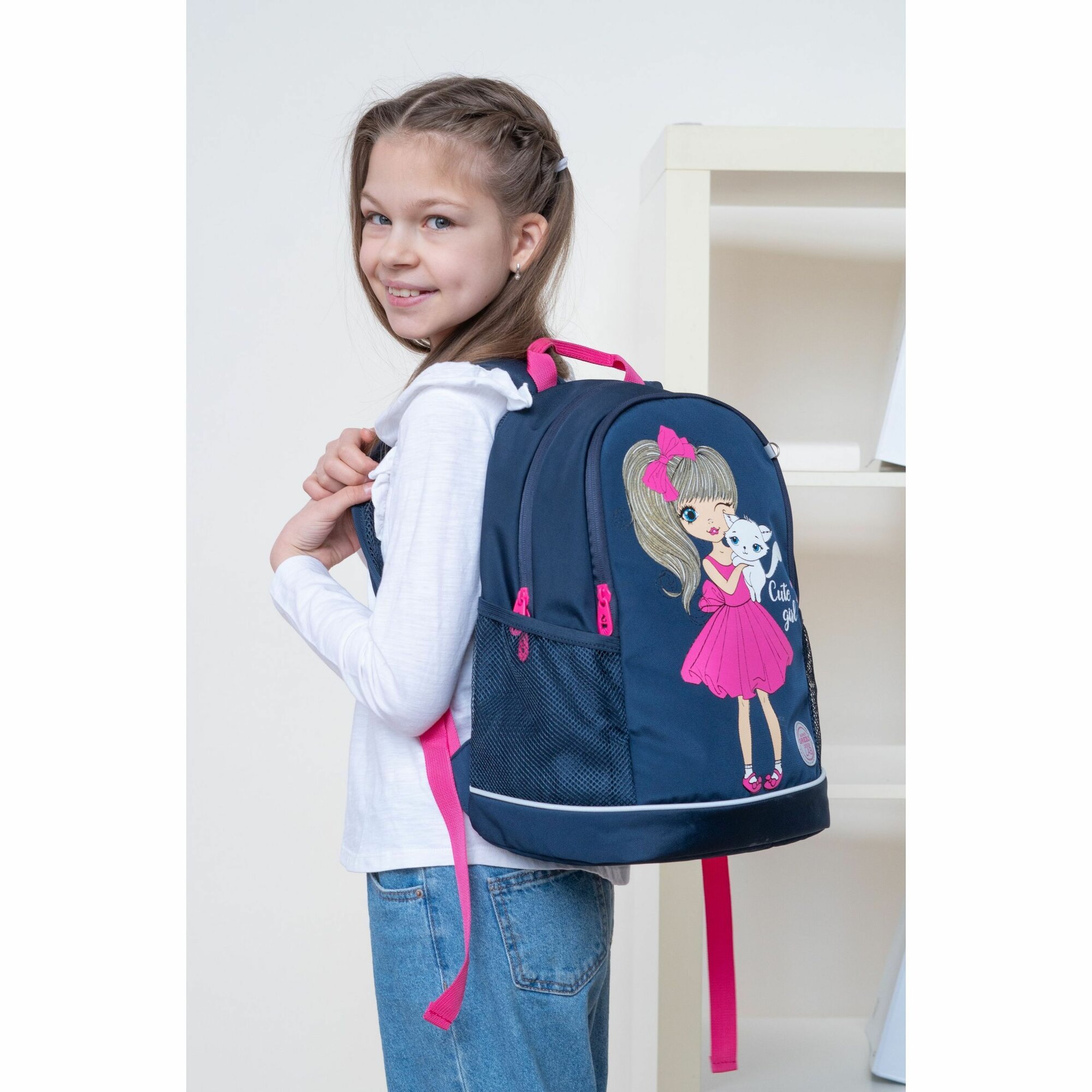 Рюкзак школьный для девочки подростка, с ортопедической спинкой, для средней школы, (темно-синий) информация:
