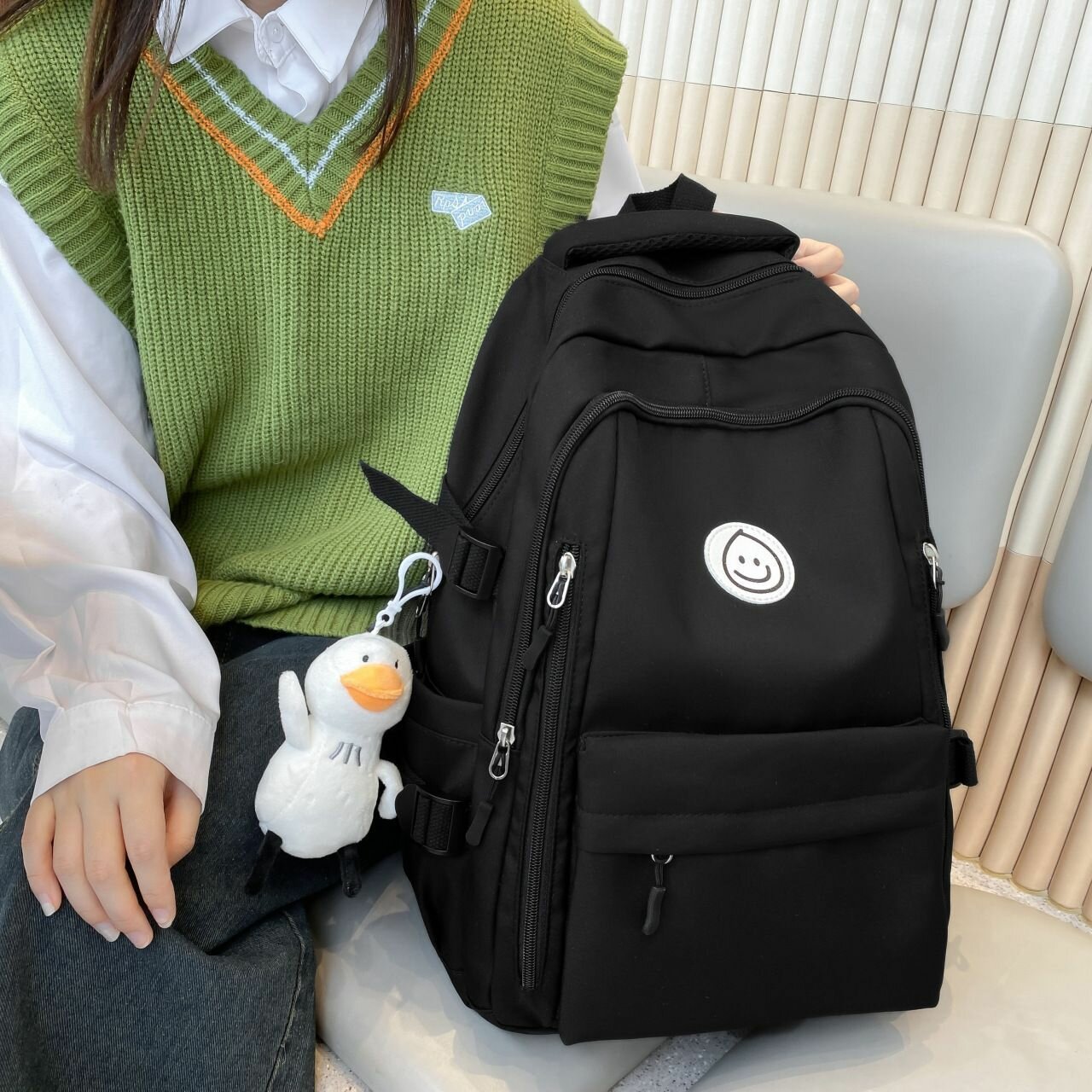 Отзывы на Рюкзак облегченный подростковый школьный для мальчиков для девочек универсальный унисекс Смайл