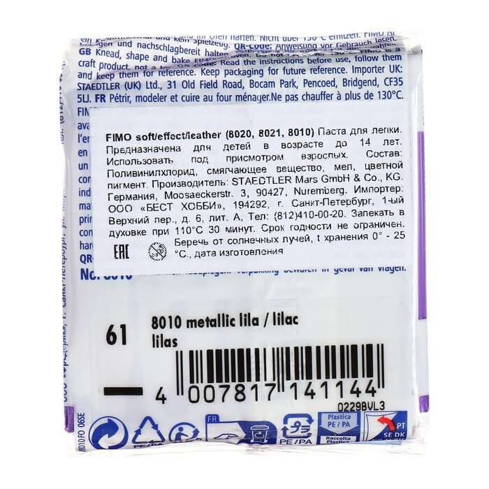 Отзывы на Пластика-полимерная глина запекаемая 57г FIMO effect сиреневый металлик 8010-61