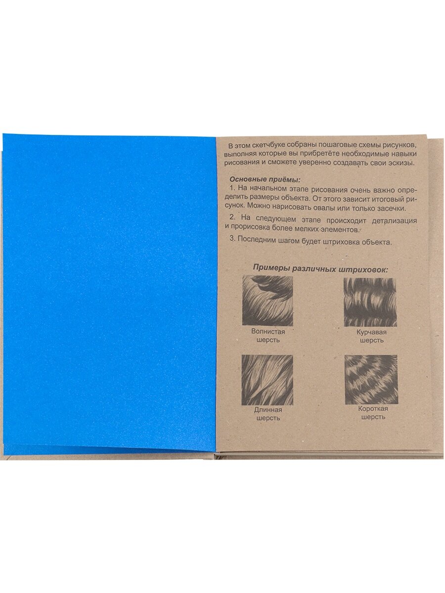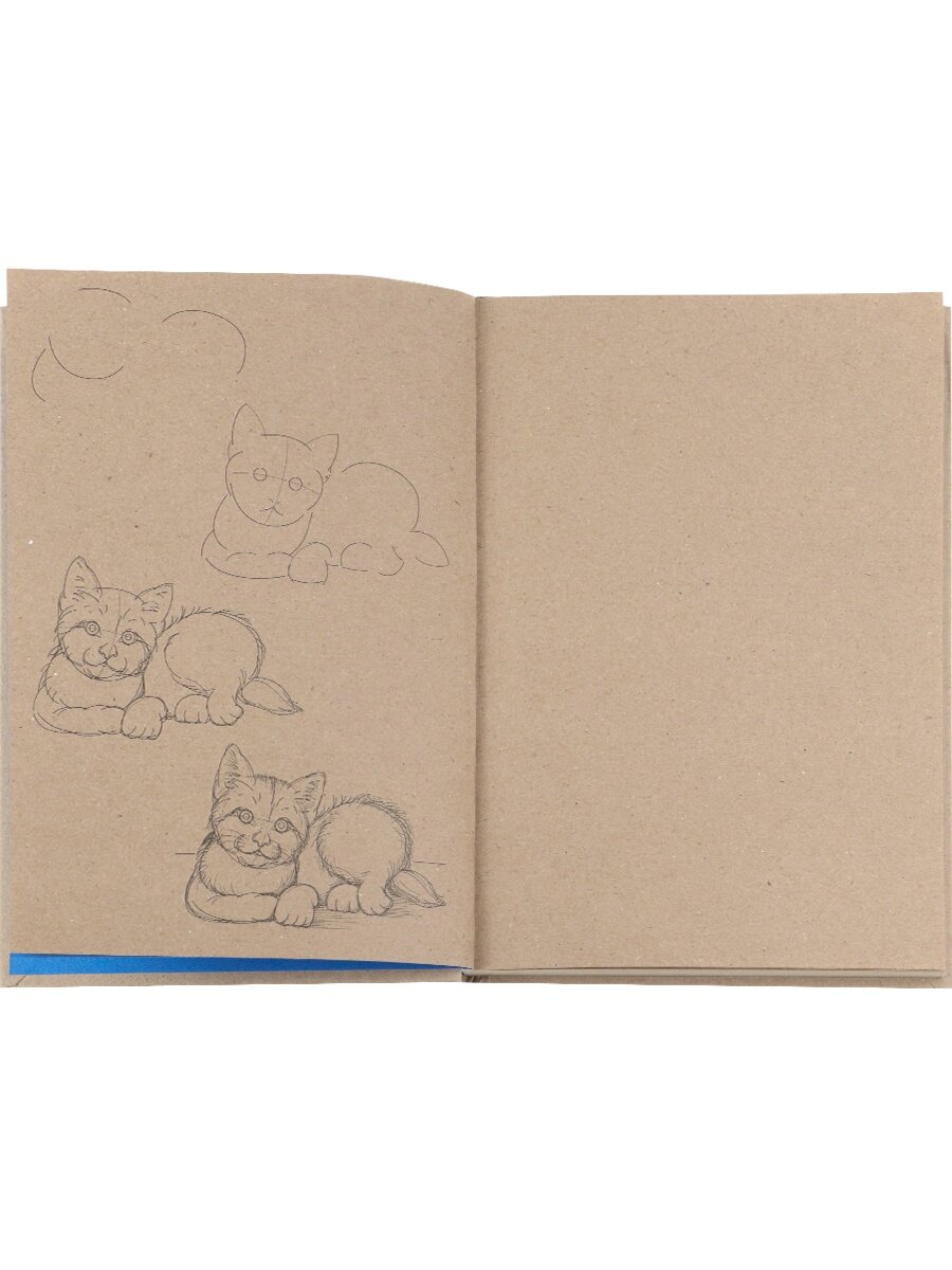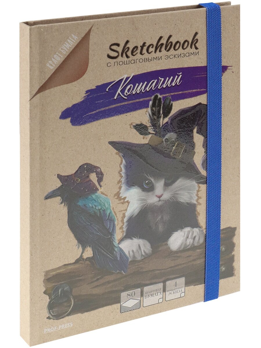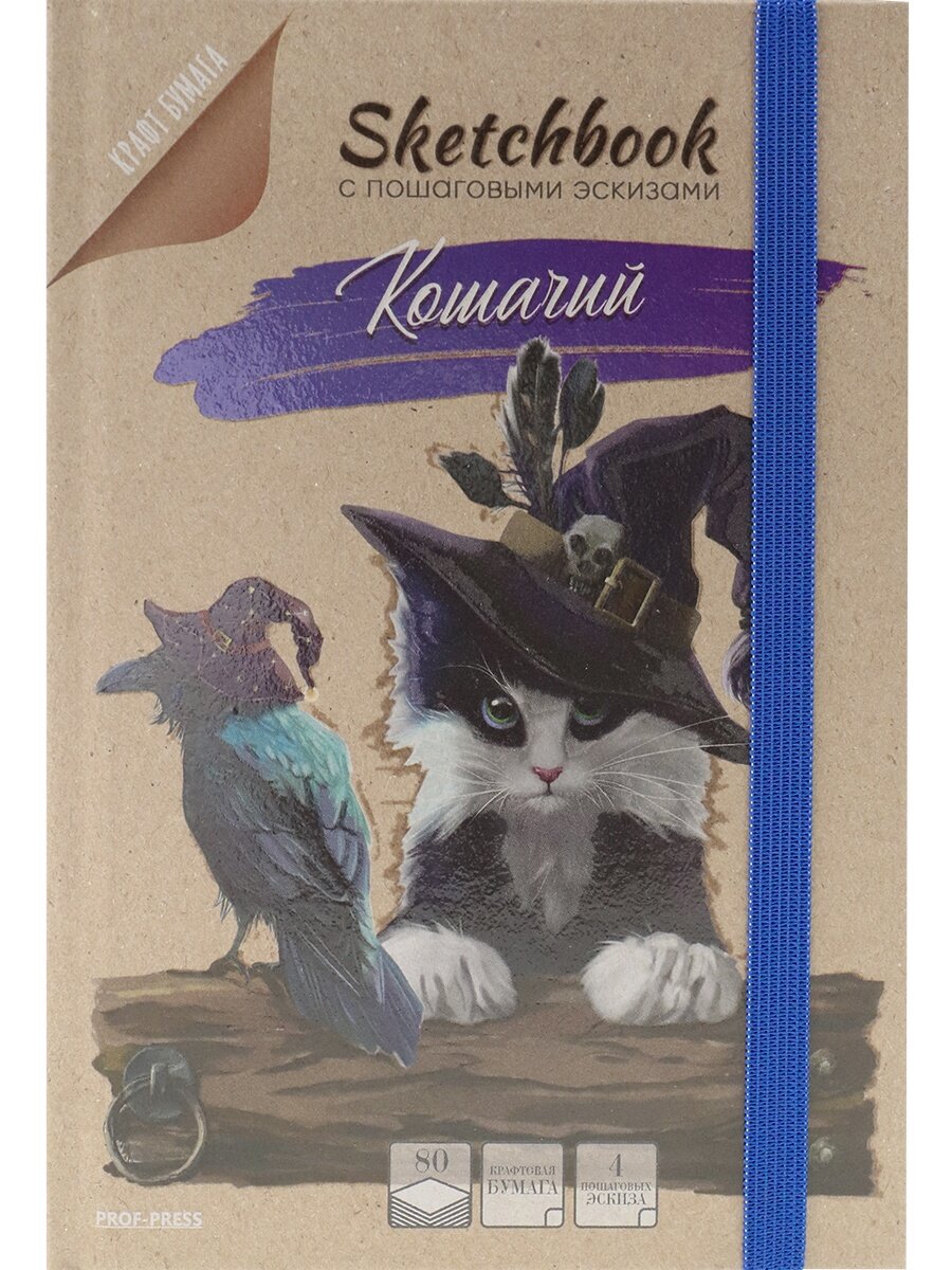 Скетчбук Проф-пресс "Кошачий", крафт, с пошаговыми эскизами, А5, 80 листов, 80 г|м2, резинка, твердая обложка информация: