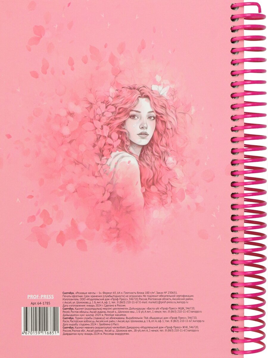 Скетчбук Проф-пресс "Розовые мечты-1", А5, 64 листа, гребень, 100 г|м2, твердая обложка информация: