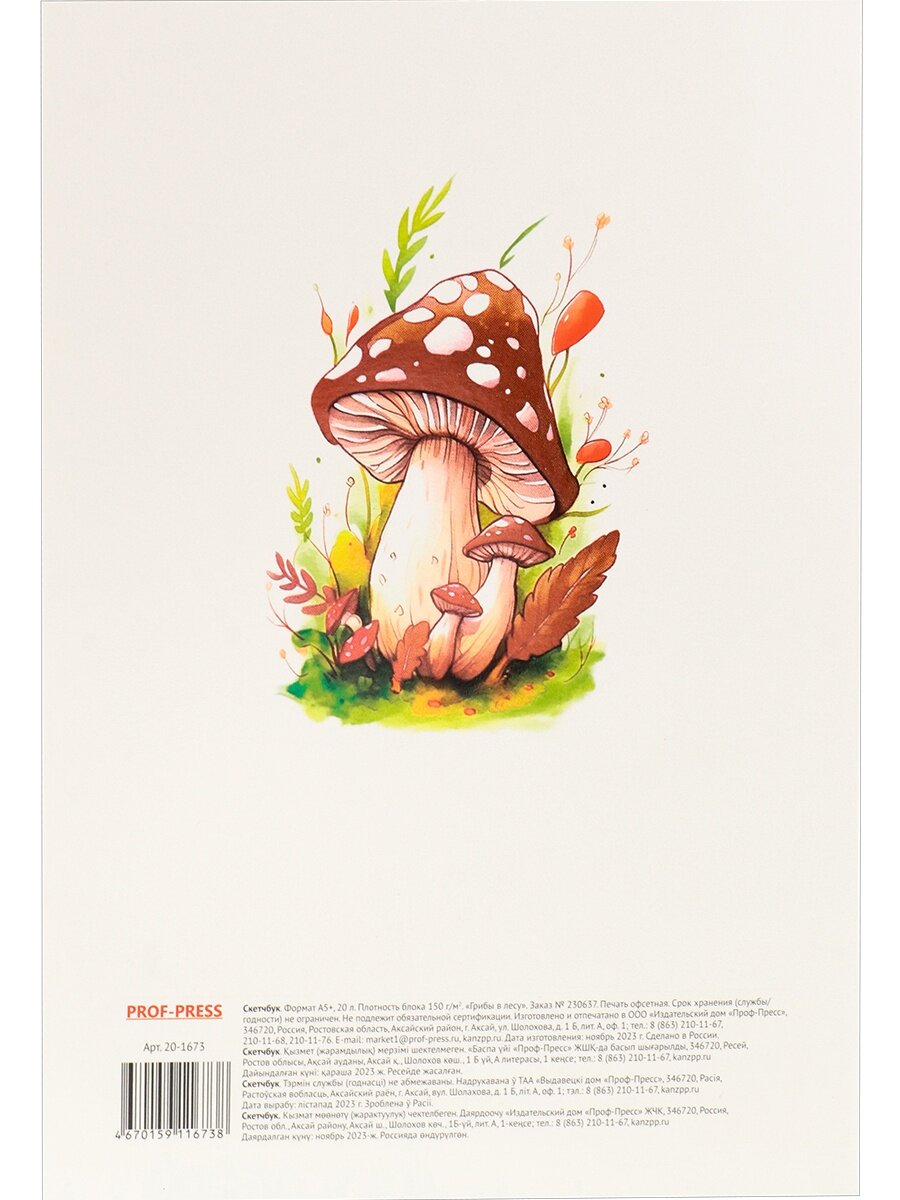 10 цен на Скетчбук Проф-пресс "Грибы в лесу", для маркеров, А5+, 20 листов, сшивка, 150 г|м2