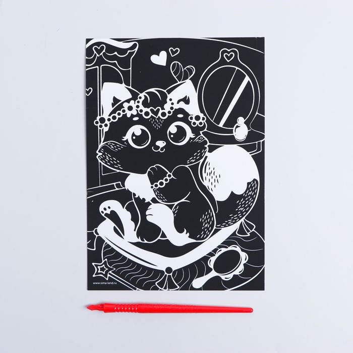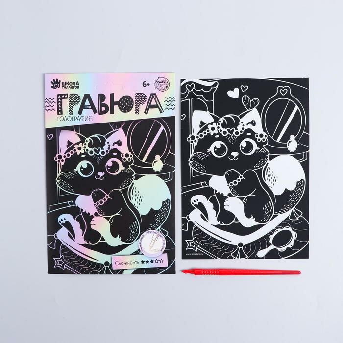 Гравюра «Кошечка на пуфике» А5, с металлическим эффектом голография, 2 штуки информация: