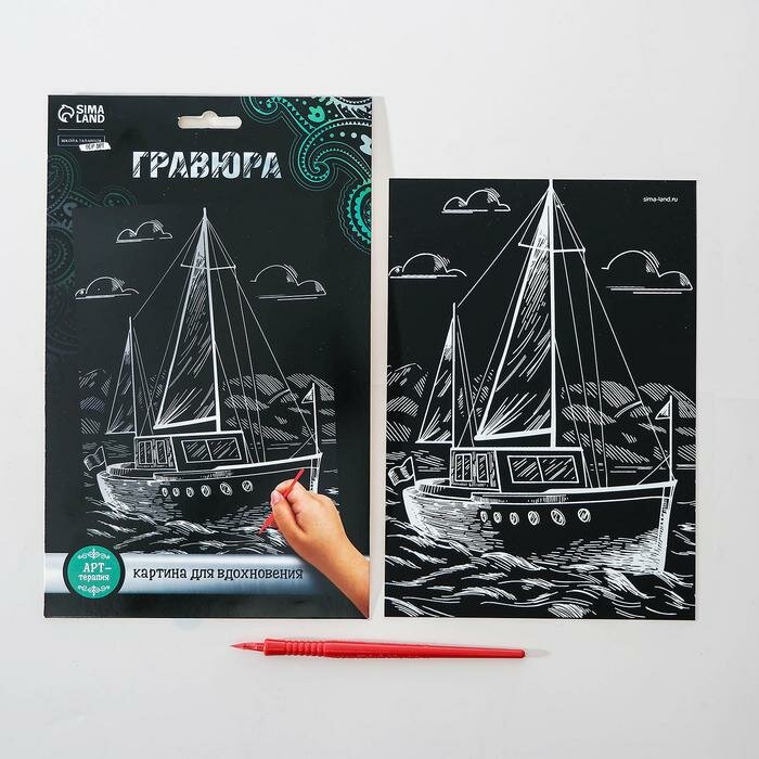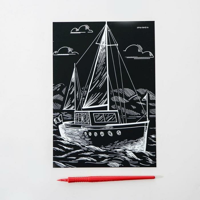 10 цен на Гравюра на подложке «Яхта» с металлическим эффектом «серебро» А5(2 шт.)