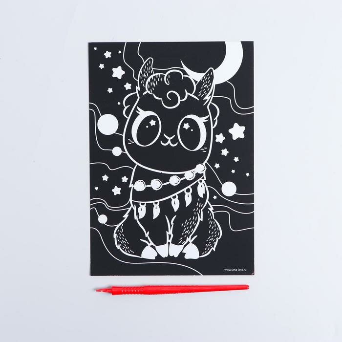 Гравюра «Лама и звёзды» А5, с металлическим эффектом голография, 2 штуки информация:
