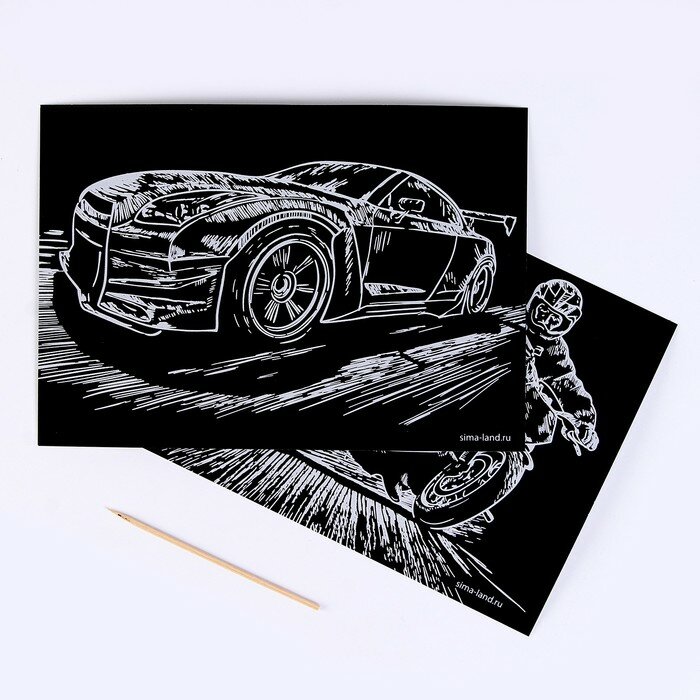 10 цен на Набор гравюр А5 «Автомобиль и мотоцикл» 2 шт., с металлическим эффектом «серебро» (1шт.)