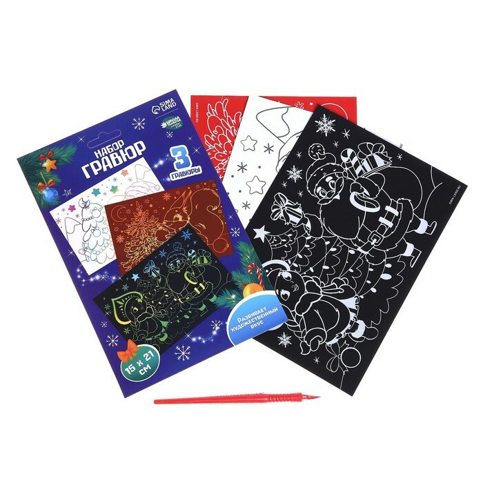 Новогодняя гравюра «Новый год! Ёлка», А5, 3 шт информация: